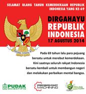 Seluruh Staff dan Direksi Pudak Scientific Precision Part Machining mengucapkan Dirgahayu Republik Indonesia. |