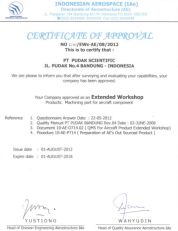 PT. Pudak Scientific bangga mendapatkan Certificate Of Approval dari PT. Dirgantara Indonesia (Indonesian Aerospace / IAe). |